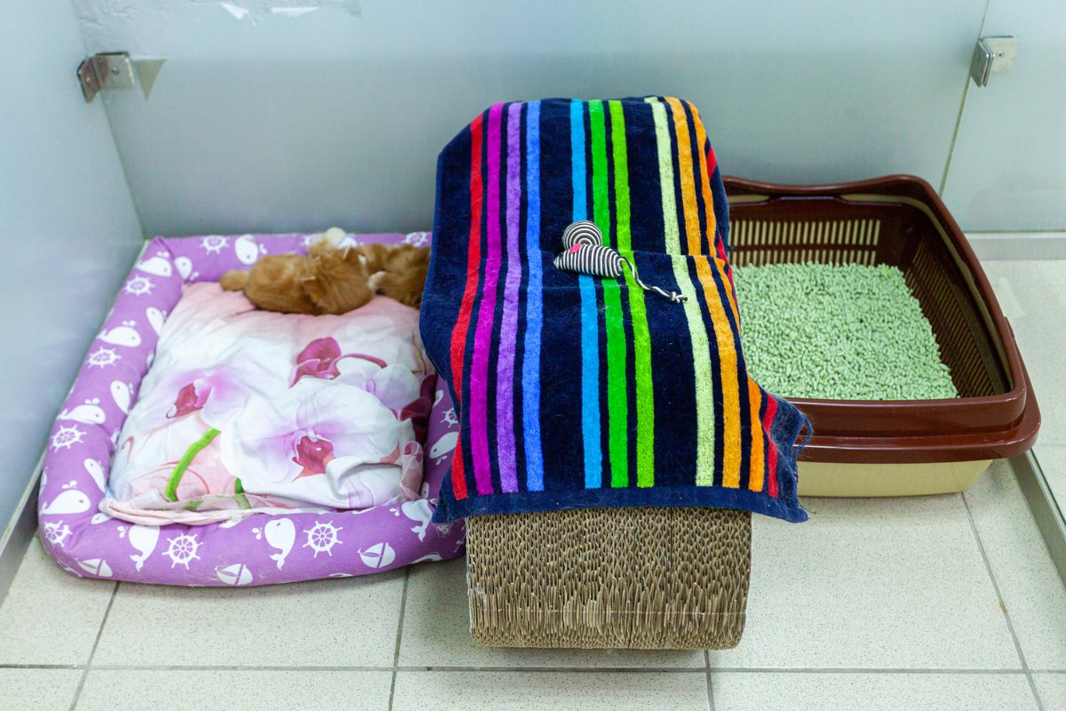 У питомца в боксе всегда чисто и всегда был корм и свежая водичка.