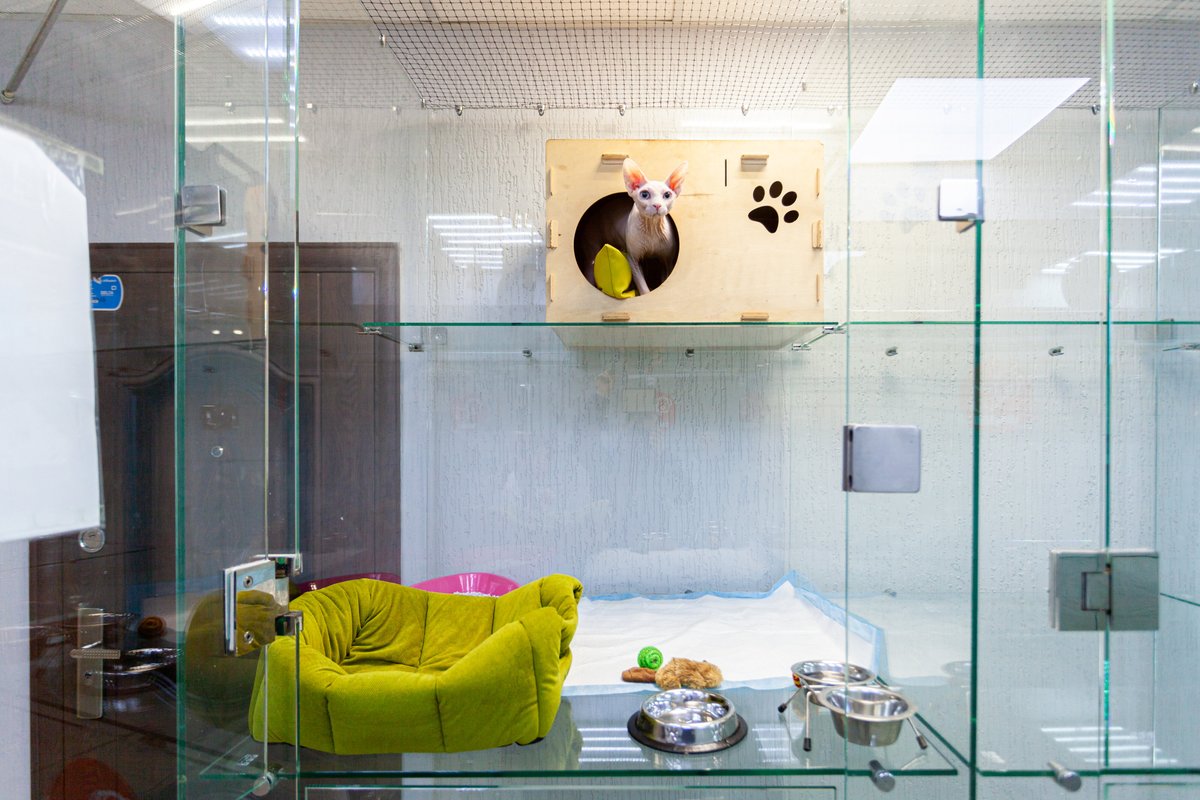Зоогостиница, мне понравилась, в ней созданы все условия для нормально проживания животного.